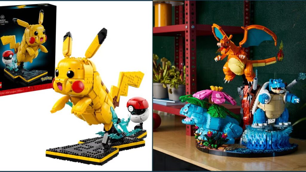 - LEGO® Pokémon™ 72153 (Trio): Набор из 6 838 деталей. Включает три подвижные фигуры (Венузавр, Чаризард, Бластойз) на общей базе.